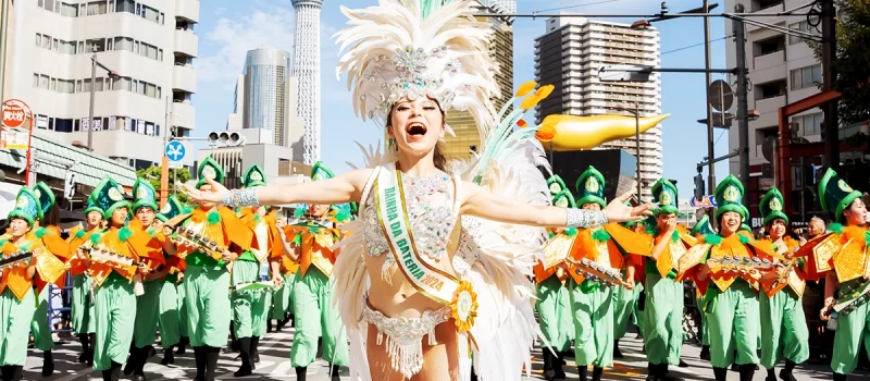 Lễ hội Asakusa Samba Carnival kết hợp giữa văn hóa Nhật Bản và truyền thống Carnival của Brazil.